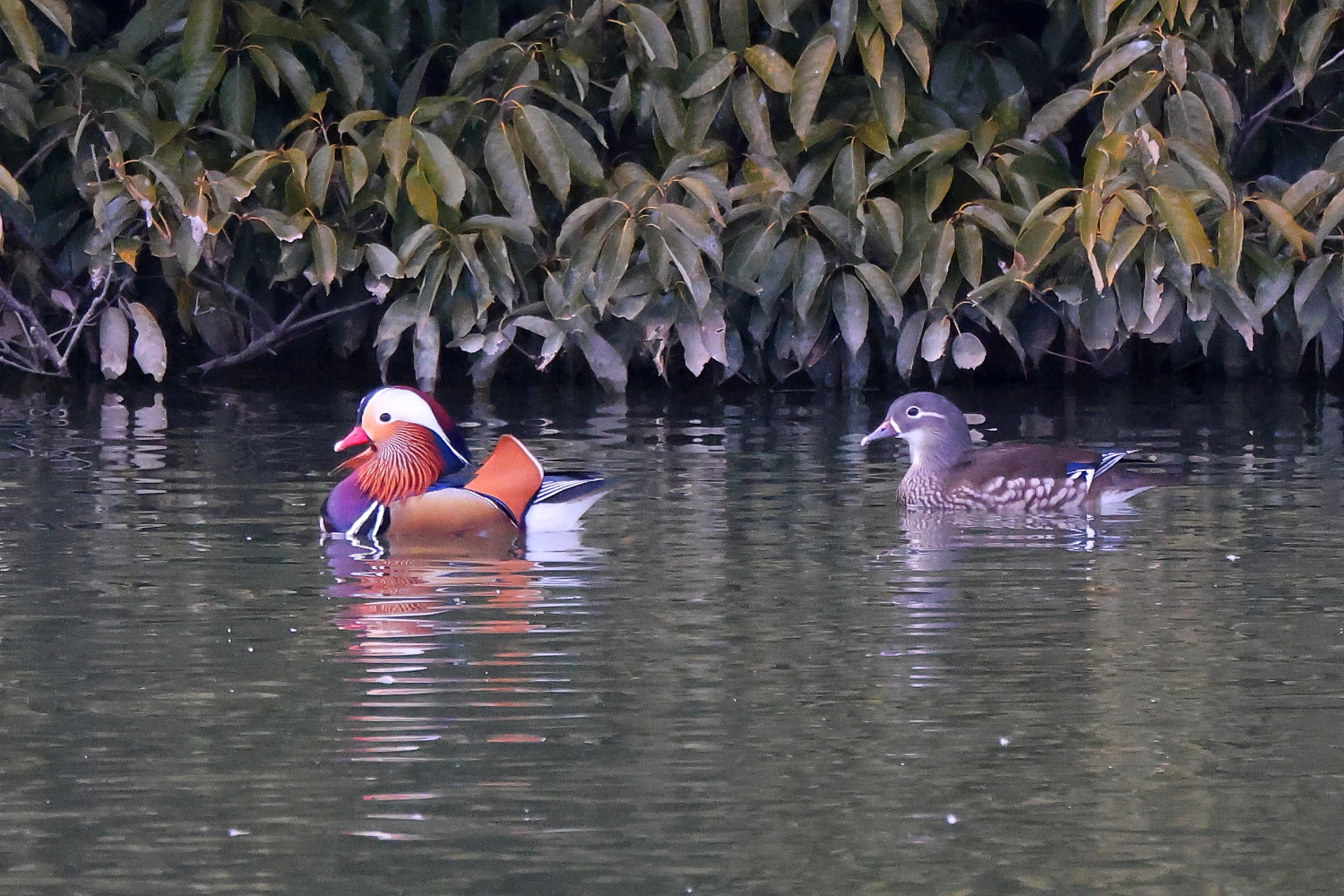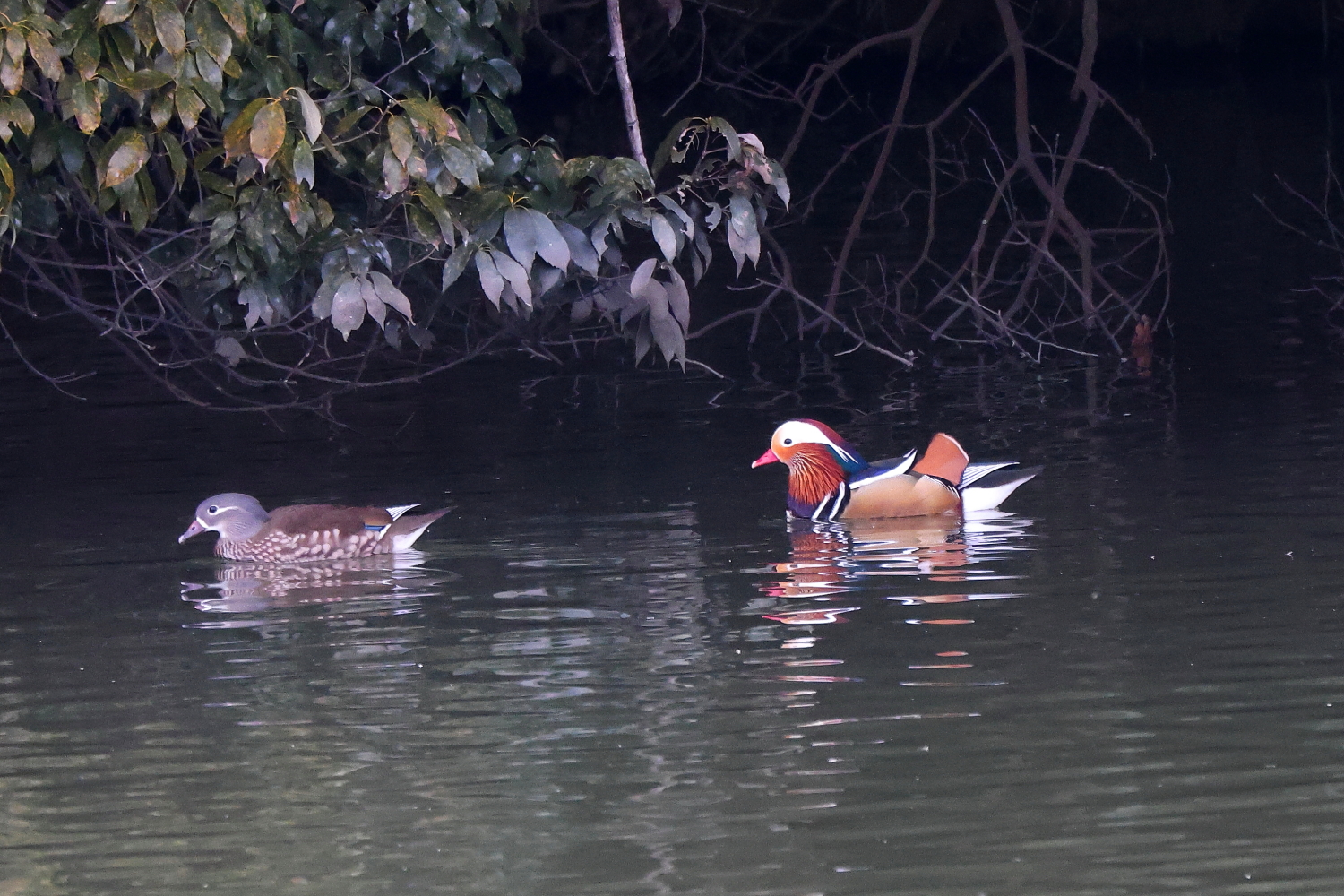 ☆近所の大池の隣の池を遊泳していた「オシドリ♂♀」