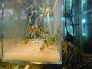 イバラタツイエローの仔魚が生後100日を超えました。時々ミナミヌマエビの稚エビを与えるようになってから少し大きくなったような気もしますが伸び悩んでいます。でも体色もよく元気そうです。土曜日は久しぶりに海へ行ってきました。チビタツの為にヨコエビを採りたかったんですが成果はゼロ。もう少し寒くならないと採れないのか潮の状態が良くなかった為か残念です。イソスジエビは採れたので小さなものは大人のタツの餌にして大きめのものや抱卵中のものはチビタツの餌になるゾエアを確保する目的で水槽内に入れました。先日購入したイバラタツイエローのピンクチップの状態がとてもいいので更に2匹追加購入しました。今回の子達は小さめですが濃い目の黄色にトゲ先がピンクで可愛いです。以前は稚魚が大きいことや値段につられてインドネシア産を購入して何度も失敗しました。ショップの画像では可愛くて色も綺麗で元気そうに見えるのに家に着てからアット言う間に病気になったり、餌も食べて元気そうだったのにポックリ逝ってしまったりして悲しい思いをしました。最近ピンクチップのイバラタツをよく見かけます。値段は安いところから高いところまで様々ですが同じ出身地なんでしょうか?以前何回かインドネシア産を購入したお店でも可愛いピンクチップの子を安く売っていますが、前にそのお店から購入したイバラタツイエローの子達は購入して1週間以内に☆になってしまいました。(子持ちのオスが多かったのも原因の一つかも知れません。) 値段が2/3なのは魅力的だし、ピンクチップの子なら大丈夫かも知れないとも思いましたが不安なので、今回は、そのお店からは購入しませんでした。今まで新しいタツが来ると初めの一週間は魔の一週間で毎日ドキドキしながら水槽を覗いていましたが今回のタツ達はウソのように元気にしています。タツはデリケートで飼育も難しいと思ってきましたが、状態のいい個体を入手出来れば餌は別として飼育は難しくないんですね。今までの不調は産地の問題なのか、お店の管理の問題もあるのか謎です。どちらにしてもタツも飼育者も可哀想なので、なんとか改善して欲しいものです。。
