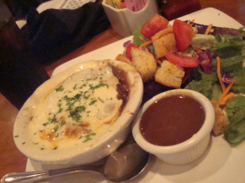 どうしてか、火曜日のレストラン、キッズミールがフリーのお店が多いです。スープとサラダのハーフ&ハーフプレートを私用にオーダー。すると、子供達にはコーンドッグ、フレンチフライ、サラダのセット。別コーンドッグのセット。これにトッピング自由なアイスクリームも付いて来た~!他には、ピザ、ホットドッグ、チーズバーガー、マカロニチーズなど♪夫が留守の火曜日夜は楽が出来ます