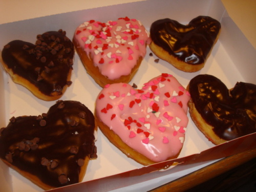 アメリカと言えば、皆ドーナッツを食べている?日本のミスタードーナッツが恋しい私ですが、アメリカではそのミスタードーナッツの兄弟会社、ダンキンドーナッツ(DD)が有名です。バレンタインデー限定商品。可愛いでも大きさが不揃い…アメリカらしい。ゆるい…。また太る