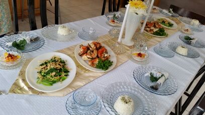 今日は、 シンガポールで有名なシーフード、 ブラックペッパークラブを作りました。 本場では、 まるごと一匹のダンジネスクラブを 使いますが、ここはアメリカ! その蟹どこにある~? と、言うことで入手困難なので 上品に食べられる 違う種類の蟹のつめだけを使用 他には副菜とデザートも🎶 シンガポールは赤道直下の 真夏の国と言う事で アンティークは、 ファイヤーキングのバブルを使用。 清涼感出たかしら? でもここはシカゴ。外には残雪が… もっと真っ黒に黒コショーを きかせても良かったかな? 味は塩辛い中にも旨みと甘さが絡む 病みつきになる味! チャイニーズブロッコリーと フライドオニオンの相性抜群! ココナッツミルクと牛乳のジュースには なんとサツマイモが! あとは、色とりどりのフルーツ 🍏🍑🍌🍒🍇🍊🍓🍍🍈 今日いらした皆さんは 四人でとっても仲良しのグループ。 皆さん話し方がゆっくりして可愛く素敵 そう言えばネットで ブスは早口、 美人はゆっくり話す人が多いと読んだ。 あー、そっか、 だから私は早口なのか? 少しはお上品にお話しましょっ って、今更無理でしょうか?