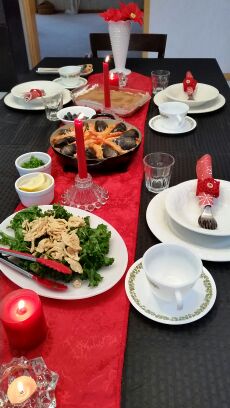今日のお料理教室は、 韓国人のお友達が 一人お友達を連れて二人で参加。 パエリアを習いたいとの事。 簡単に作れて、見栄えして、美味しい。 これがモットーの私。 今回も簡単であっという間の1時間で作る。 パエリアは、好きな魚介を使って。 豪華に見えるかな? 体に良いとされている ケールはオレンジなどの 柑橘系ドレッシングとあう。 一見ティラミス? いえ、なんちゃってで 本当はコーヒーを浸した レディーフィンガーと言う スポンジのもとを使った コーヒーケーキです。 マスカルポーネチーズが 無くても美味しい! 韓国のドラマの話や、 ピアノの話で盛り上がった。 友達はピアニスト🎹🎵 今度、キムチの作り方習おっ。 あっ、キムチ苦手だった…