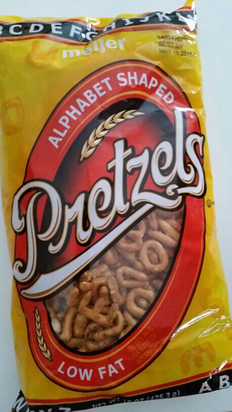 次男の通う小学校では 授業と授業の間、 若しくは授業中にスナックタイムがある。 全学年にあるのです アメリカでは炭酸ジュース離れが 年々進んでいるらしい。 糖分摂取を抑え肥満防止の為。 でも周りを見渡しても 皆コーラがぶ飲みしてるけどなぁ。 なのでどこの学校でも ヘルシーフードをと、 うたっているはず。 ランチ時はどんなフードもok。 アメリカで定番のホットドッグ、 ピザ、サンドイッチ、 コーンドッグ(アメリカンドック)に ポテトなどのスナック、チョコレート ヨーグルトなどなど。 でも授業の合間にある スナックタイムだけは ヘルシーな物をと、 強く言われている。 スティック野菜、フルーツ クラッカー、豆など色々。 去年度迄はザクロの実だけ 解して持参していたが 今年の先生はザクロ禁止。 なぜならば、真っ赤な果汁で 床、絨毯が汚れるから… 確かに。 で、プレッツェルをよく持たせる。 こんな可愛いの見つけた お近くのMeijerでどうぞ。 アルファベットのお勉強に 役立ちそうです。 うちの子達は 私とこれで会話したいそうです 口で話した方が早いだろうに…
