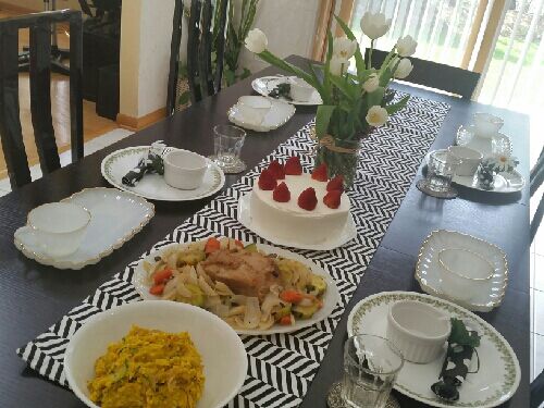 今日の土曜日は 平日お仕事されている 方達3人の参加でした。 昨日頂いたチューリップが 開いています。 可愛い🌷 焼いて蒸したポットロースト カボチャたっぷり ゆで卵、赤玉ねぎ、ハムなど 色々入った甘くて酸っぱいサラダ イチゴケーキ 実は私スポンジ系が苦手です。 もっと勉強せねば… シカゴにある 世界的に有名なクッキングスクール コルドンブルーにいつか行きたい。 と最近切に願う私。 でもなかなか条件が難しくて。 サイトを見て夢見てますゆめ
