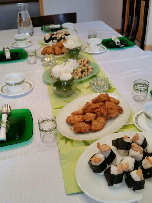 お料理教室が 何件か続いたので まとめてアップ。 名古屋手羽先 天むす 鬼饅頭 鳥の治部煮 エビ、シソ、野菜のゼリー寄せ 餅粉と餡子のケーキ 名古屋手羽先 天むす 抹茶ういろう 赤味噌おでん なるべくアンティークの 食器を使っていますが 人数分の5枚、6枚以上 揃っている種類が少ないので アンティーキングをしなくちゃです。
