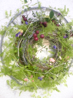 今月は、プリザーブドリーフ&アーティフィシャルフラワーを使って