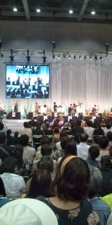 今日は熱海の花火大会のイベント広場で行われた Unknown Jam Session のライブを観てきました。 《アンノウン・ジャム・セッション@熱海海上花火大会 elli(vo&)・南木直樹(vo&guitar)・佐々木 章(guiter)・和佐田達彦(bass)》 ※Unknown Jam Sessionは、音楽を通して社会貢献をする目的だけに結成されたバンドです。 メンバーは、日本の音楽シーンを支え続けてきたベテランのプロフェッショナルのミュージシャン。今では総勢40名程だとか。 CDの収益は、WFP(国連世界食糧計画)に寄付されるそうです。 詳しくは… http://u-js.com/ ♪♪♪♪♪♪♪♪♪♪♪♪♪♪♪ さてこの季節、 夜行性動物と化している私にとって 昼間の野外イベントはかなりの勇気と気合いと荷物を必要とします(笑)。 が、 大好きなアーティストに会えるとなればなんのその! さすが日本のモナコ・熱海!(笑)。 会場では水着の人も多い!(ジョ☆サンなんて、上に羽織っていれば水着で入店OKって張り紙が!(笑)) 肌はステキな小麦色。 なまっちろい自分は重装備(笑)でバスを降りた途端、 相当浮いていましたが…。ま、いいっか!と思って(^_^;)。 16:15からのステージ。 背中がジリジリと服の上から焼けてました。(+_+) ステージのelliさんはノースリーブのステキなワンピース☆ 多分、相当ジリジリいってたはずです(笑)。 が、 海とヨットをバックにさわやかな歌声。 ひまわりのような笑顔☆☆☆ やっぱりelliさんは、空とか、海とかが似合うなぁ~と思いました。 18:10からのステージはもう! いいかんじで日が暮れ初めて、風が気持ち良くて。 タオルも帽子も、ながーい手袋も必要ないなんてうれしい私(笑)。 Unknown Jam Sessionの「誰もうたわない歌」。 初めてCDを聴いたのは2年前だったか3年前だったか…。 泣きながらエンドレスで聴きました。 あの時、 グッときて、 スゥーっと染み渡って、じーんと響き続けて。 (なんか、ひどい表現ですみません(^_^;)) 今日、elliさんと南木さんの声で聴いたこの歌。 改めて受け取った感じ。 『 恋人にフラれたら、泣けばいい。 だけど、 空腹で泣くのはイヤだ。 』 「誰もうたわない歌」のチラシにある言葉。 私は、空腹で泣いたことなんてないなぁ。と…。 新曲も聴けて、楽しいLIVEでした! 今日、最初のステージが終わって次まで1時間半弱。 無理だろうなぁ~と思いながらも、前から気になってたカフェへ! それも自分が居る場所もイマイチ分かっていないし、 そのカフェには一度も行ったこと無いし、 駅の近くの商店街の近くと言うだけの曖昧な記憶。。。。 でも、行けちゃったんです(笑)。 CAFE KICHIへ。 それも歩いて! いつもだったら辿り着け無いパターンだけど、今日のワタシは冴えてたぞ☆ ステキなお店でした。今度はゆっくり行ってみたい!(笑) ニューサマーオレンジソーダと、ラズベリーソースのかかったショコラをいただいて涼んだ後、 急いでバスに乗って再び会場へ向かったのでした。 花火は観ずに帰って来たけど、別に☆ 今日の目的はLiveですから(笑)(=⌒ー⌒=)。 写真は 1:行きのバスからの眺め 2:最初のステージ 3:次のステージ ※日差しの強弱にご注目ください(笑)