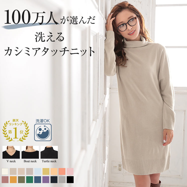 神戸レタスさん 24時間限定タイムセール! 16日9:59まで 込890円 ランチタイム限定で 2点購入で使える100円クーポン出てますよ♪ <br>★見つけた方だけ★今だけ送料無料890円!! ニット レディース ニットワンピース おうちで洗える♪[ ワンピース / チュニック / トップス ]カシミアタッチ☆セミオーダー風ニット[N555]【入荷済】ニットワンピ 秋 Vネック