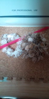 こんばんは☆ 後少しでマフラー完成です(^-^)v シュシュ作ってみました♪右は買ったシュシュで~す では仕事頑張ります(^-^)v