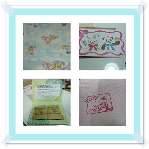 こんばんは先日みるくラブは ヨシかぁちゃん から可愛い手ぬぐいをget出来ました~チャリティー手ぬぐいはいつも20時からの販売でみるくラブはいつも仕事中いつも買えないのにラッキーなことに買えました早速お披露目~kumakoroさん の所で見たのとは別物~くまころさんの見て欲し~~~って思ったんですが期待以上の可愛い手ぬぐい~しかも愛情たっぷりの説明書付きそして素敵なお花の種付きポスかも購入させてもらって気分は最高ですヨシかぁちゃん ありがとう~沢山使わせて頂きます