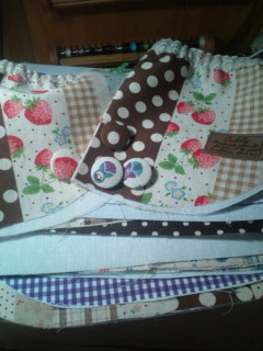 こんにちは今日は頼まれていたグラニーバックをやっと渡せました長~~~くお待たせしてすみませんでしたそしてまだまだ待ってる方今頑張ってますでは今回渡したグラニーで~す一つ目紫のマトちゃんでした二つ目麻の茶色のいちごちゃんどちらも形が綺麗に出来ました今日は接着芯をつけたので夜はミシンで~~す そして去年の私といえば意見発表大会に向けて頑張っていました前の日記思わず読み返してしまいましたそこで今年意見発表大会に出るお友達といつもお世話になってる素敵な女性に頑張ってね巾着を渡しましたサイズを間違えて縦長になってしまいましたでも頑張って作ったので使って頂けたら嬉しいな~一応ラッピングして渡せました 関東甲信越大会目指して頑張って下さ~~~~~いでは仕事に行ってきます