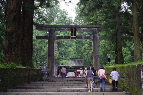 松尾芭蕉(まつお・ばしょう)あらたふと青葉若葉の日の光おくのほそ道元禄二年(1689)旧暦四月一日(新暦5月19日)作ああ 尊く神々しい。青葉若葉の万緑を育む燦々たる日光よ。註下野国しもつけのくに(現・栃木県)日光東照宮にて詠んだ。長い乱世に終止符を打ち天下泰平をもたらした「東照大権現とうしょうだいごんげん」徳川家康を讃えた名句。あら;ああ。感動詞。たふと:形容詞「尊し(たふとし)」の語幹。「トート」と読む。ありがたい。もったいない。かたじけない。「たふとし」は、もと文字通り「タフトシ」と読んだのだろうが、音便化されて「とうとい」と「たっとい」の二音が派生し、現代に至った。 日光東照宮 表参道 鳥居ウィキメディア・コモンズ パブリック・ドメイン