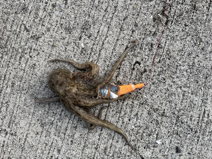13:00-15:00 中部漁港昨日、雨ふりそうやけど、タコ釣りに行きたいと悶々しており結局、雨降らなかったのでタコ行っておけばよかったと悶々してたまらず、タコ釣に出撃タコ釣り結構行きましたけど、一番釣れるのは雨が降りそうな分厚い曇りの日が一番釣れる気がする。夜よりでタコエギ投げて、1時間で4杯ゲット水深2mないところで、サイトでエギングして多からクソ楽しいでなんか、タコとはちょっと当たりが違う物がヒットして何やろうと思って寄せてたら、釣りたかったモンゴウイカ!!やったぜと思って抜き上げようとしたら身切れ・・・・・・・・せやった、タコ釣りで感覚麻痺してたけど、イカってサイズ大きかったら基本身切れするわでまだ乗るんじゃと思って泳いでる紋甲の目の前にエギ投げたら再度乗るも、アワセミスでもう一回投げたら、エギ消えた。鬼アワセ食らわして巻き上げたらタコ釣れてて意味わからん良型はいないが、キープサイズ釣れたのでタコ焼きや!唐揚げも最高にうまい個人的には刺身以外は タコ>>>>>紋甲>アオリイカ刺身は アオリイカ>>タコ>>紋甲
