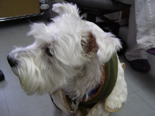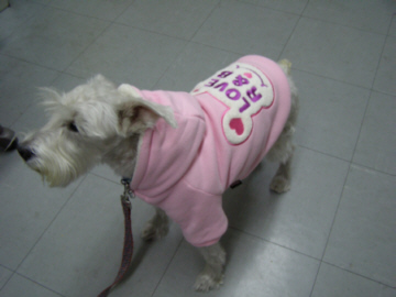 お正月休み中、体調が悪いのもお休みしてくれたみたいで、久しぶりにとーっても調子がよかったイヌーピーです。お休みが終わったら元にもどってしまいましたが。年末に買ったピーちゃんの洋服。かぶりものじゃない厚手の生地の服がほしくって、探しまわっていたのですが、やっと、コレいいなぁというのに出合ったら、ピンク色しかなく、まあいいかと思いピンク買って着せたら、「なんか赤ちゃんみたい」と、言われるし、散歩中には、「カワイイ」って言ってもらえるけど、子供が近づけば「ガウガウ」です。まあ、いっか