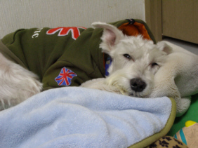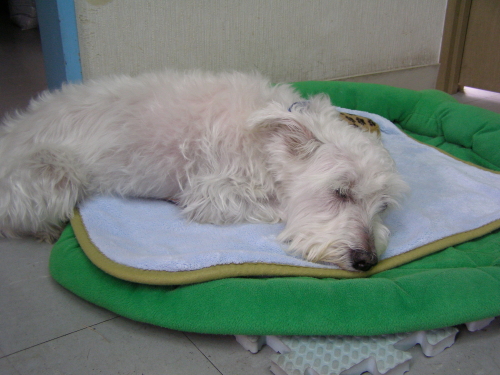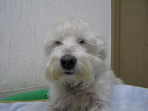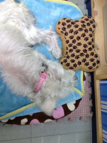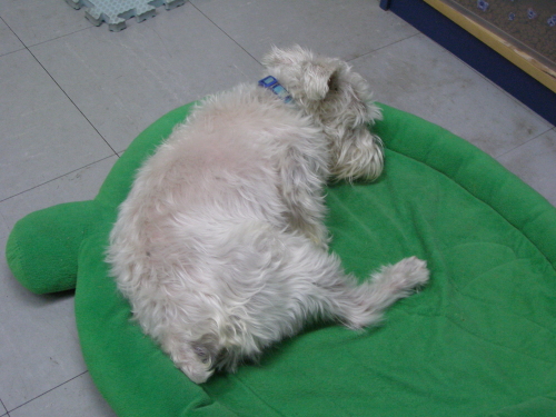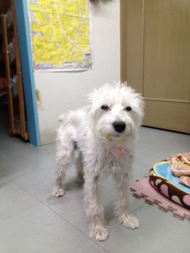 しばらく体調がわるかったので、ぼっさぼっさです。オフロも入れていません。でも、10日ほど前に変えたご飯がよかったようで、今、お腹の調子は普通になれました。これがいつまで続くかはわかりませんが、ほっとしてうれしい毎日です。体調を崩したから1年4ヶ月、やっとほっとできる所までこれました。ただ・・・このところヘルニアぎみで、足がもたついています。まだ、軽いから安静にしていれば改善することも・・・とのことで、今は段差&階段禁止、お散歩は片道のみで帰りはだっこ、って感じです。夜中のおトイレ散歩がなくなったので、お互い熟睡です。もう少しよくなったらシャンプーですね。