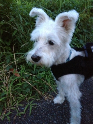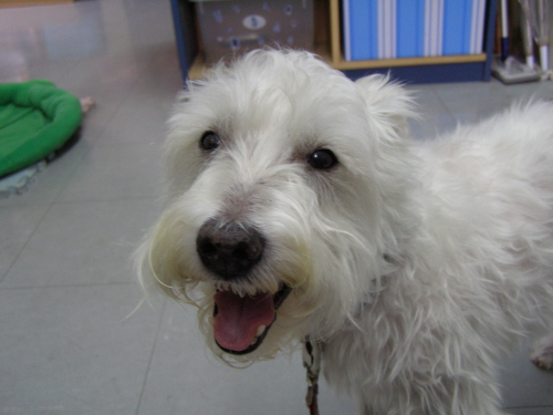 もさもさイヌーピー君です。体調がいまいちのため、トリミングに行けません。でも、お散歩中、ワンコちゃんを発見すると、耳ピーン!目キラン!シャキッとします!