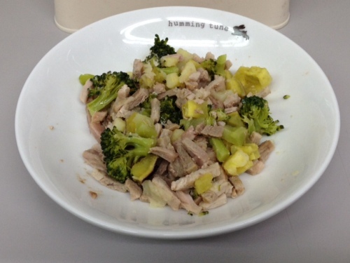 食物アレルギーで下痢をしてしまうため、手作り食をはじめてしばらくたちましたが、やっと野菜までたどり着きました。今日初めてのブロッコリー。一度にたくさん食べれないので今は1日3食です。今日のお昼からブロッコリーを食べてます。今のとことはお腹の調子は大丈夫。野菜が入ってご飯の見た目が美味しそうになりました。このまま食べれるとよいのですが・・・。過ごしずつ食べれるの物を増やしてあげたいのです。