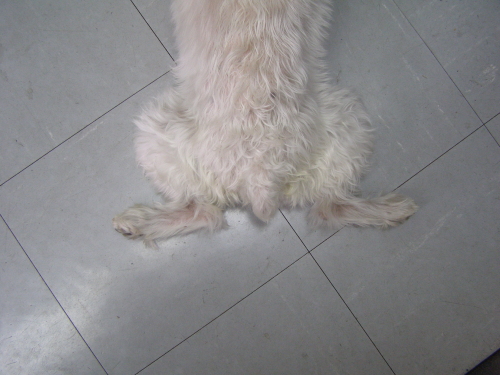 腰痛のためトリミングはダメと先生に言われてしまい、「お家で刈れないの?」の先生の一言からはじまった、イヌーピーの丸刈り計画。実家の母はねね子にバリカンしてたので、そのバリカンを借り、1mmの刃しかなかったので、替え刃の3mmを買い、先週、初刈りしました。一度に全部しないで、短い時間で負担を減らしています。その後、シャンプーして、今日、第二弾の刈る日。足の毛って、背中刈るより難しいですね。丸刈りを言うより・・・トラ刈りです。まあ、過ごしずつ上手になるか・・・ピーちゃんの腰痛が治ってトリミングに行けるようになるか・・・どっちが早いのか。前は、3mmで刈ってもきれいなピンクの肌だったのですが、11歳もすぎると、シミが多いです。