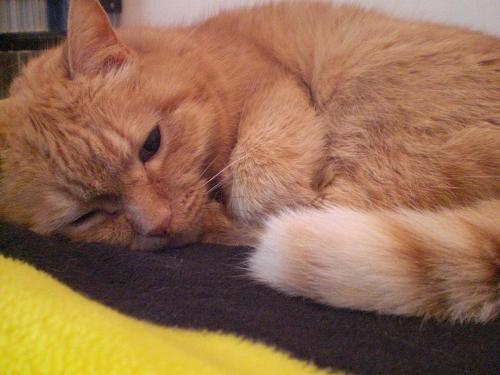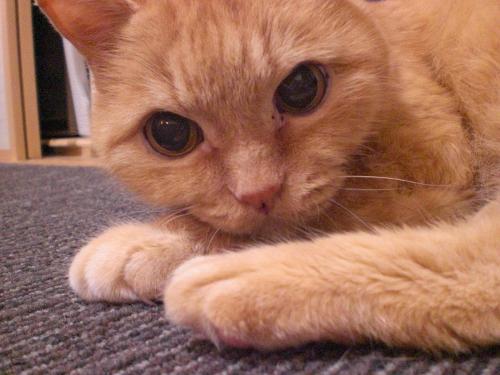 木曜日からマイ君が立てなくなりました。意識はしっかりしているし起き上がろうともするのですが手足があっちこっちに折れ曲がって全く立てません。病院に行って血液検査をするとカリウムが極端に少なくなっていました。3ヶ月前に死にそうになった時もカリウムが少なかったのですがその数値よりもまだ下がっていて先生いわく・・・「この数値なら死んでもおかしくない」くらい低いそうです。。。前回と同じく、静脈点滴をしました。明日も明後日も静脈点滴をする予定です。それで立てるようになるのかどうかまだわかりませんが本人は立ち上がろうともがいては疲れて「フーッ」とため息をつきまたゆっくり眠る・・・を繰り返しています。マイ君につきっきりの時間が長いのでダヤ君はすっかり情緒不安定気味です。マイ君のことが心配だけど自分をもっとかまって欲しい・・・そんなストレスからお腹をずっと舐めて舐めて真っ赤になってしまいました。ダヤ君、ごめんね。。。それからマイ君、頑張ってね。。。