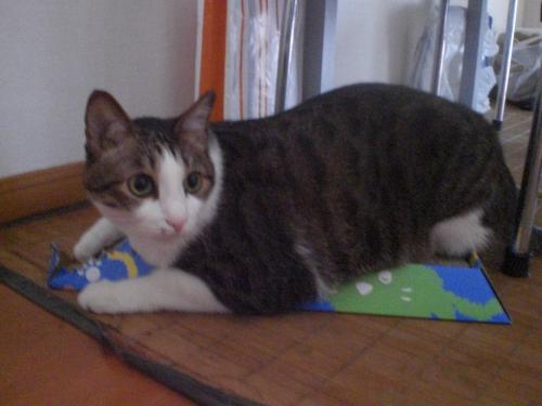 ダヤ君、お気に入りの爪とぎです仔猫の頃からご愛用でこれが4台目になります。(ダヤ君が大きすぎて爪とぎが見えないってことはつっこまないで下さい) この爪とぎには『またたびの粉』が付いてくるのですが1度も使ったことはありません。使わなくても、なぜかまたたび臭がするようで毎回、新しいのを出してあげるとおかしな感じになってしまいます。今回はこのコーナーにまたたび臭が付いていたのかここばかりを臭っては舐めたり噛んだり・・・ まだ新しいのですが、爪をとぐ前にこんな感じになってしまいました。 爪とぎでもだえるダヤ君もどうぞ~とりあえず、ダヤ君のでかさが際立ってます(笑)