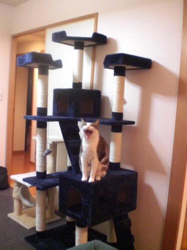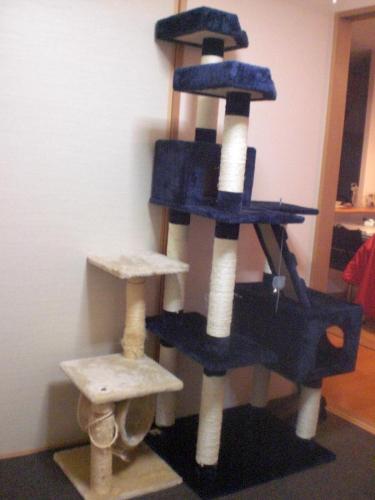 「もっと大きなキャットタワーを買ってあげるからね~」とダヤ君と何度も何度も約束していましたがこの度ようやく約束を果たすことができました左のタワーが仔猫の頃から愛用しているタワー(ちっちゃいね~!)右のが新しいタワーですダヤ君の体重を考えると思った以上に選択肢が少なく散々悩んだあげく、ようやくこのタワーに決定このタワーならダヤ君サイズでもまぁまぁギリギリ遊べそうでも、実はこのタワーはまだ未完成なのです本来はダヤ君の隣にポチッと出ているネジ棒にもう1本ポールが立つ予定なんですよ。(ポールが不良品だったので新しいポールを待ってます。)でも素直なダヤ君はそんなことは気にしないどころかこのポチッとでたネジ棒をおもちゃと勘違いしている様子なんて健気なお坊ちゃまだことしかも慎重なダヤ君はまだこのタワーに直接登ろうとせずお気に入りのちっちゃなタワー経由で登るというこれまたお坊ちゃまぶりを発揮しておりますね、可愛いでしょ~(私だけ ・・・?)