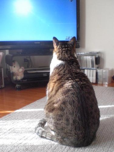 今年になってテレビを買いました。やっと地デジ化です。前のテレビは小さすぎてスポーツや競馬を観るときにはぴったりはりついて観ていましたが前より画面が大きくなってようやくゆっくり観れるようになりました。ところで前々から気づいていましたがダヤンのテレビ好きが止まりません。 画面が大きくなって一番喜んでいるのはどうやらダヤ君に間違いないようです。この真剣な後姿が可愛くてしかたないのですが目が悪くならなものかと・・・少し心配でもあります