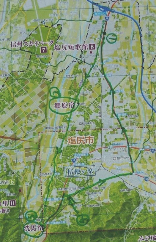 塩尻でのジョギングコース (1) ホテルルートイン 塩尻北インターを出発(2) 郷原宿 立て札には、柳宗悦が宿場を絶賛したくだりが書かれていました。 「…街道は、手入れされた庭木を並木としてその間を通っているのである。 こんなに美しい構造の宿場は他には見かけぬ。それも死んだ過去のようではない。 宿場全体が見事な一個の作品だといってよい。信州のすぐれた名所として、否、 日本の貴重な文化財として、当然公認せられてよい。」(ネットで調べた内容) このあたりからブドウ畑が広がっています(3) 洗馬宿で折りお返し(4) 城戸ワイナリーにも立ち寄りました 平出遺跡近くにある個人経営のワイナリーです草刈り作業中の城戸さんにも、一言挨拶してブドウ畑を見せていただきましたこうして塩尻市とブドウの名産地である桔梗が原を1周する20kmのジョギングを楽しみました。