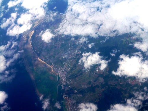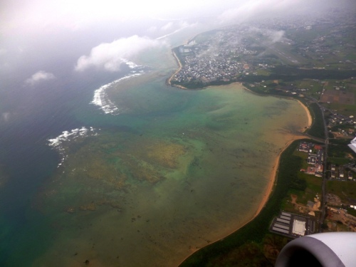 空からのサンゴ礁 今回はずっと曇りで空の青さが映らなかったのが残念ですが、 それでもこの透明な海の美しさったら! (サンゴ礁の写真クリックで拡大画像になります) 石垣島 沖縄本島南部 那覇 那覇近郊 遠方に慶良間 下に不思議な虹が出ていました こうして、1泊2日の石垣島マイル修行を終えました あまりに沢山の感動があったので、 一週間も旅に出ていたたような気がします