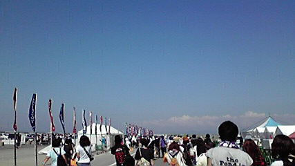 お久しぶりのまゆかとー☆まゆかとバンプ以外のライブ行ったのは初!まゆか携帯忘れてて早速焦る!笑早めに集合したはずが、泉大津から会場までが、えらい時間かかった・・・お互い高校の時は夏フェスとかめっちゃ元気やったけど、もう日焼けも怖いし、暑いと体力ももたんね・・・と会うなり弱気トーク(笑)会場に着くとひとりトモフが先にシートで場所取って、私はオフィシャルグッズへ、まゆかはビークルグッズへ。並んでる間に、RGと中川の入浴宣言が(笑)しばらくして【DOES】大はじまっちゃったー曇天 サブタレニアン・レイジー・ベイビー・ブルースレイジー・ベイビー 修羅 バクチ・ダンサージャック・ナイフ(新曲) 明日はくるのか「バクチダンサー」って聞こえた瞬間並んでた人が一斉に「あぁー」と溜息。向こうで見たいよなーまゆかとビークルんとこで合流したけど、進んでなさにビックリそうこうしてるうちに露天の方で【a flood of circle】露お初やったけど、声はチバ系やったと思うのだが。最近のニューカマー達は、メロコアか、オシャレか、チバとかブランキー系か、ピコピコ系かに分かれるねーなんて、まゆかと。【THE BAWDIES】大まゆかに謝って私は大浴場へ!IT'S TOO LATE EMOTION POTION HOT DOG KEEP YOU HAPPY JUST BE COOL KEEP ON ROCKIN' YOU GOTTA DANCE このくそ暑い中スーツでお疲れさんです(笑)いろいろ見てから思ったけど、演奏力とかがまだまだ大御所さん達にはかなわんなーと!裏打ちが多いから、音厚が薄く感じた、け、ど!曲中はそんなことも忘れて、キャーキャー飛んでツイストして(砂ぼこりすごかった・・・)終わったあとは、ガクンと体力落ちた、はや(笑)【OKAMOTO’S】露浜ちゃーん!すげー!ほんまにあのベースすげー!全然浜ちゃんノらんしね(笑)めっちゃかっこよかったー、けど、2曲くらい見てすぐシート戻る、疲れた(笑)【熱湯コマーシャル】大モニターで。年越しのKINDAMAの宣伝を四星球が体はって全員熱湯風呂に入ったらすることができるという、安いバラエティー番組劇が大舞台で(笑)【ミドリ】大スピードビート うわさのあの子 さよならパーフェクトワールド 獄衣deサンバ ゆきこさん あんたは誰や popゆきこさんは私らコピー組勝てたと思う!笑しかし、あんたは誰やのかっこよさや、ぶっとびさは勝てんなーサンバの動きとかwwまりこちゃん、やっぱり結婚してかわいk(ryu 【ザ・ビートモーターズ】露あら、こんな演奏うまかったっけ?とちょっと思った。意外と野外映えするなー☆【四星球】S名前だけは聞いたことあったんで、ちょっとのぞいてみたら、なるほど(笑)あらびき団とかに出てほしいわ(笑)イロモノ(笑)【長田進with GRAPEVINE GUEST:奥田民生】この時間帯すっかり疲れ果ててかき氷食べながらモニターで。しかし民生の人気はやっぱすごいなー私も民生出てきてから前行ったけど。かっこよくて好き。ハウステントから聞こえてきた【FUNKY4】はスーバタ系【アナログフィッシュ】露疲れない程度にちょっとだけ見て、またシートに戻る。ドラムの人って結局戻ってきたんやっけ?あの独特な動きが好きやった。【POLYSICS】大BUGGIE TECHINICA Mach 肝心 (新曲) Tei! Tei! Tei! シーラカンス イズ アンドロイド How are you? (新曲) Digital Coffee カジャカジャグー URGE ON!! Shout Aloud!カヨちゃんいない・・・やっぱその分ハヤシはギターソロで攻めてた気がした、し、めっちゃかっこいいポリ見れたなー!と思った!Tei! Tei! Tei!去年思い出す・・・How are you?はフミちゃんとハヤシの動きそろってたのが、なんともおもしろかった。ポリは「あつい」のことを「かっこいい」って言うんやって(笑)「今年、例年よりかっこよくなーい?」って(笑)カジャカジャとかイントロちょっとかわってて、最初なんかわからんかったなー!【毛皮のマリーズ】露ぶはっ!!!と笑って、すぐシート帰ってきた(笑)安い王冠かぶって、ロックプリンスね(笑)まゆかと12時ぶりの再会☆またモンパチで会おうねーと。【THE BACK HORN】大ブラックホールバースディ 戦う君よ 閉ざされた世界 空、星、海の夜 サニー コバルトブルー 刃コッコに備えてかき氷食べながらモニターで。改めて思ったけど、バクホンすごいな!山田ええ声やな!笑フロアで見てた子は、後半のセトリ爆発したやろなー