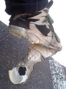 靴に穴が開くというのはよく聞きますが、そんなレベルじゃないこれ…ありえん壊れ方…へー…靴ってこんな風に壊れるんだねって感じでw今日は仕事も含めて3箇所ばかり用事があって出かけましたが、中のクッション材(ウレタン?)をぼろぼろこぼしながら歩きましたよ。もうヘンゼルとグレーテルよろしく、森で道に迷っても困らないぞみたいな。まぁこの靴自体、そうとう使い込んでますからねぇ…もう何年前だろう?バイク用として買って、10年以上は経ってますね。次もたぶん同じようなもの買います。