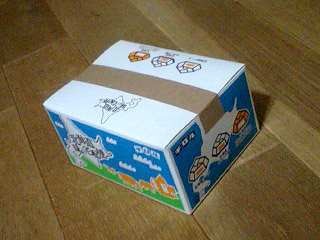 バレンタイン用パッケージのチロルを買いました。こんなん↓ん?普通のダンボールに見えますが?よく見たら逆さまやんw中を開けるとチ~ロ~ル~♪「北海道味の宅配便」という商品名ですw全国のローソンで発売ですけどね。味は3種類。北海道みるく大福…中身にもちもちっとしたゼリー?が入ってて食感がナイスw北海道チーズ…濃厚なイメージで塩味が効いてます。チーズってこういう味???北海道ミルクキャラメル…キャラメルヌガー入り(※)。こちらも濃厚で口に味が残ります。※追記:すいません、スガーじゃなく普通のクリームでしたorz何かと間違ったかな?個人的にはもちもちが好きなので、みるく大福が好みですがwバラ売りしてくんないかな~?しかしチロルってけっこうローソンと提携してんのね。あまり行かないけど、たまに行かないとダメだなこりゃw