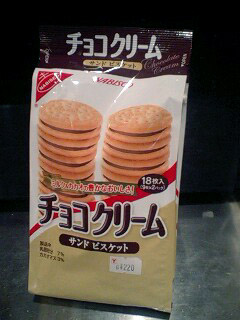Yショップでゲット。チョコクリームをサンドしたビスケット…って、そのままや!いやもう、この上ないベーシックな味です。ちょっとビスケット部分が「牛乳ください」な感じだったけど。飲み込みづらい?