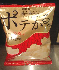 「油で挙げない」というキャッチフレーズにひかれて買ってきました。確かに油っぽくない!くどくない!あっさりしすぎてダメ!って言う人も出てきそうな味です。いや、味は普通なのか。クドさ?が無いですね。ほんとにうす~い煎餅みたいでした。個人的には好きですがwこれ作ったの、サッポロファインフーズという所ですが…ずばり、サッポロビール系列?あと、荒挽き黒胡椒味も食べました。ちょっとコショウが強すぎるかな?ポテトの味があっさりなだけに。調べてみたらコンソメもあるそうです。食べてみたい!