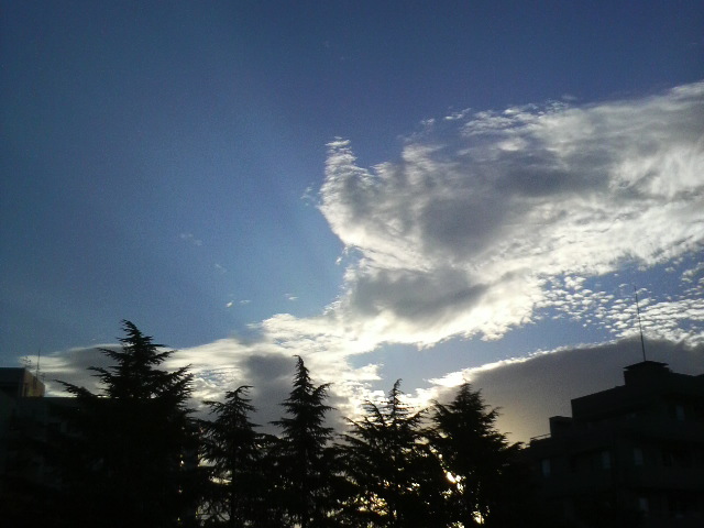 …って、今日じゃなくて、一週間前の朝ですこのころから朝だけは肌寒いくらいになりました。秋の天使のお出ましかなこちらは四日前の、日の入り少し前の空見てくれてありがとう