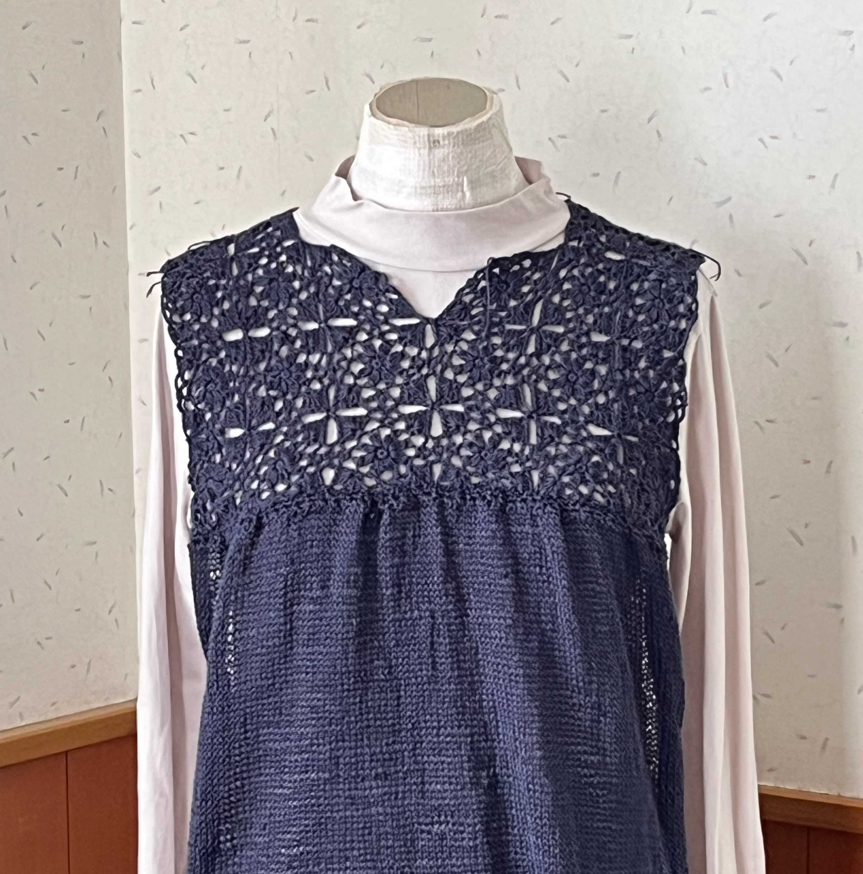 後ろ身頃もモチーフ部分編み進み、肩、襟の角度とかモチーフをどうつなげるかを考えるため、トルソーさんに配置中。四角モチーフを半分くらい1段少なく編んで、襟回りはスカラップ状にしてみようと思っていたのだけれど、普通に丸襟とか四角とかのほうが使いやすそうだなあ。。まあ編みなおせばいいので、やってみようと思ったことは実験してみます。糸はこれの前バージョン。【578N】ビューティーシルクUV コットン シルク 毛糸 合細-中細 UVカット 編み物 手芸 夏糸 毛糸ピエロにほんブログ村