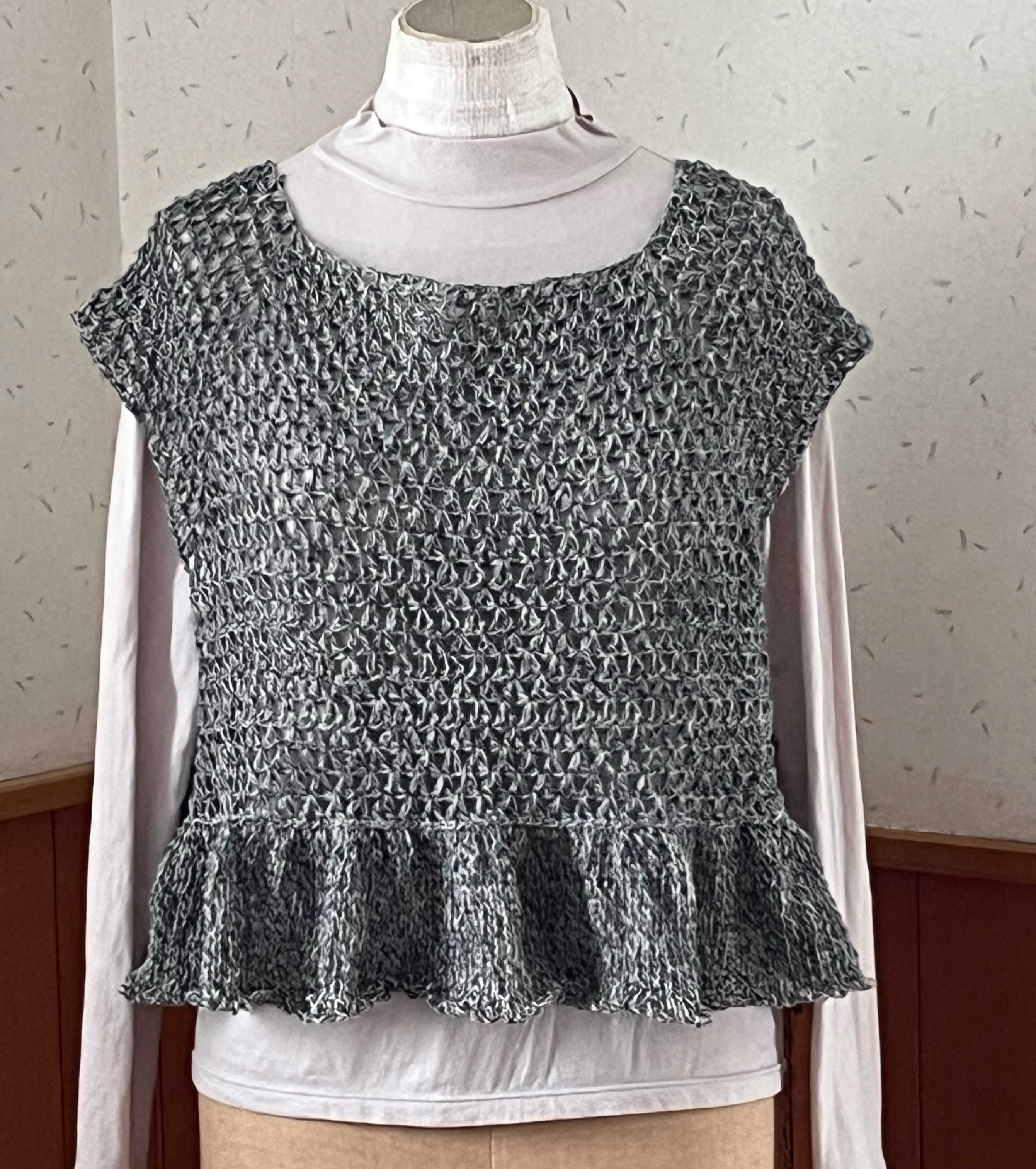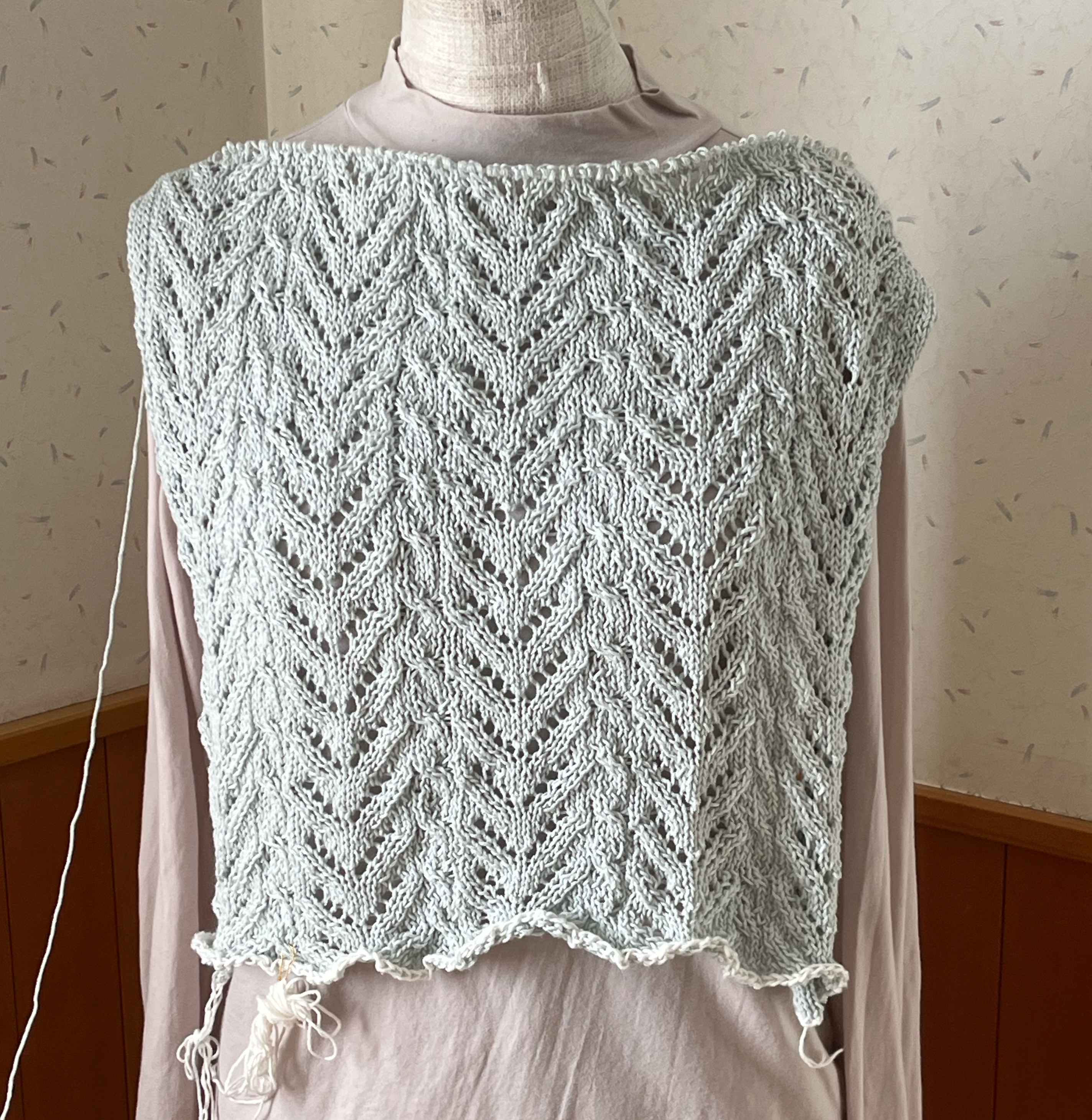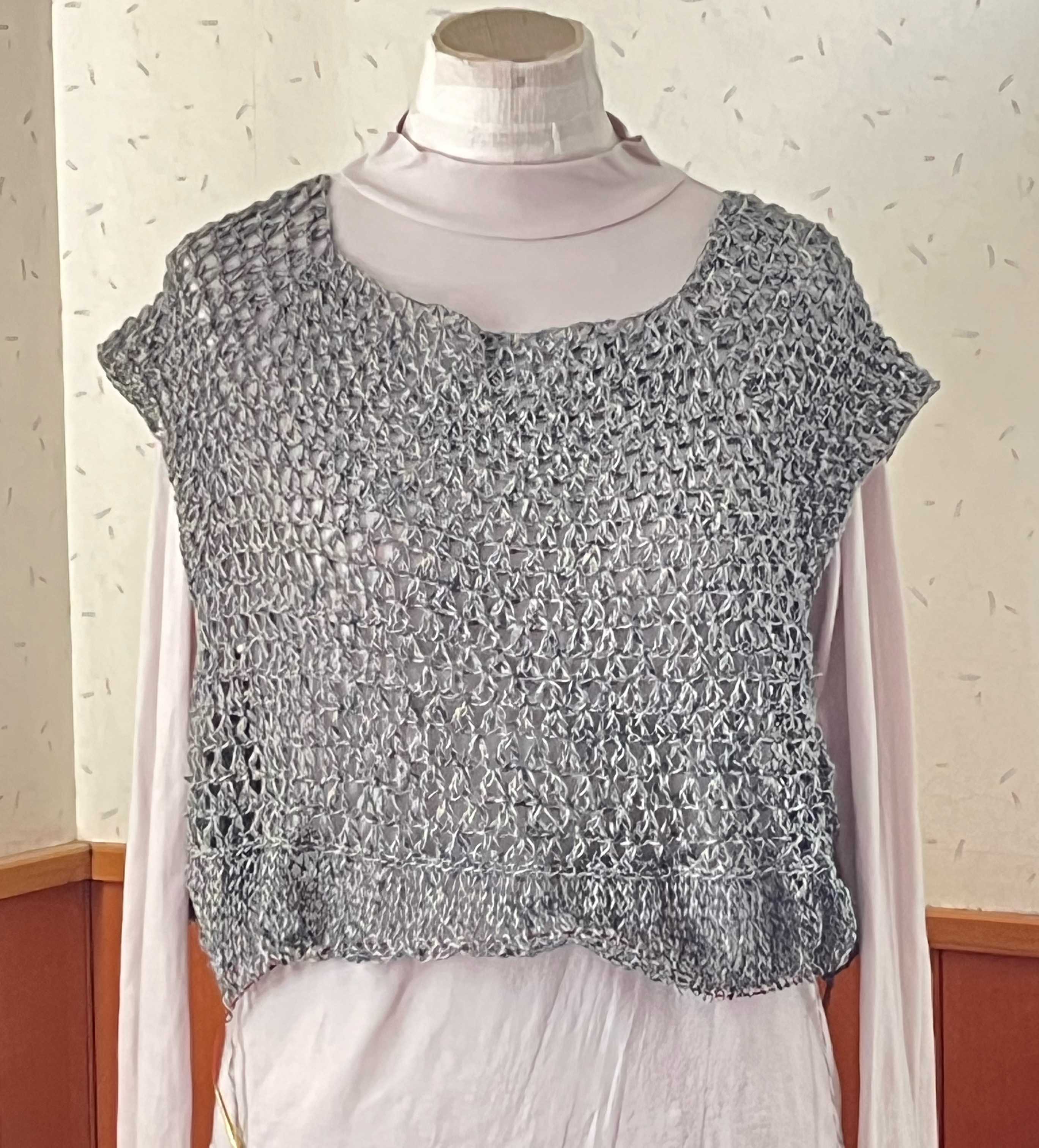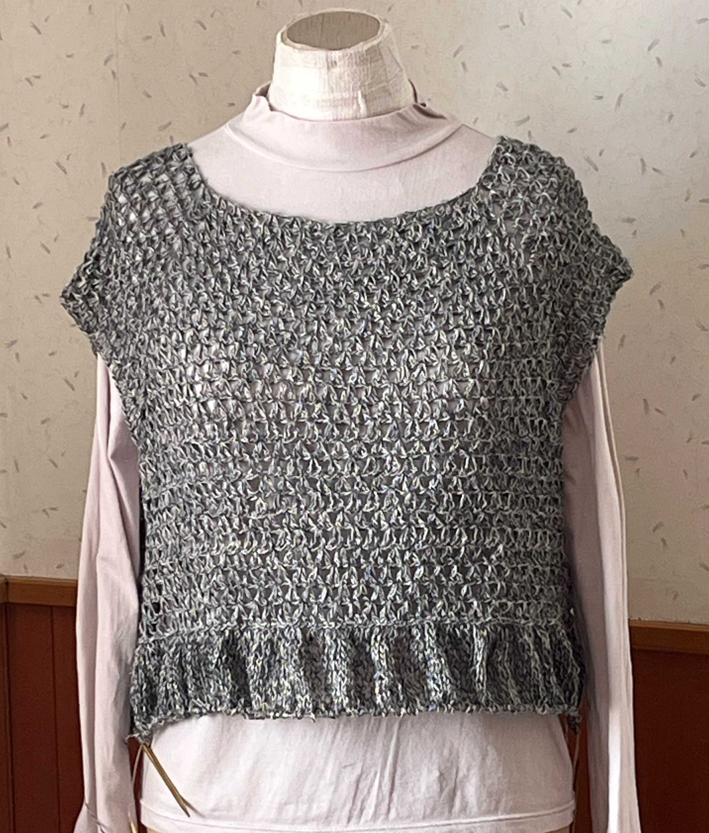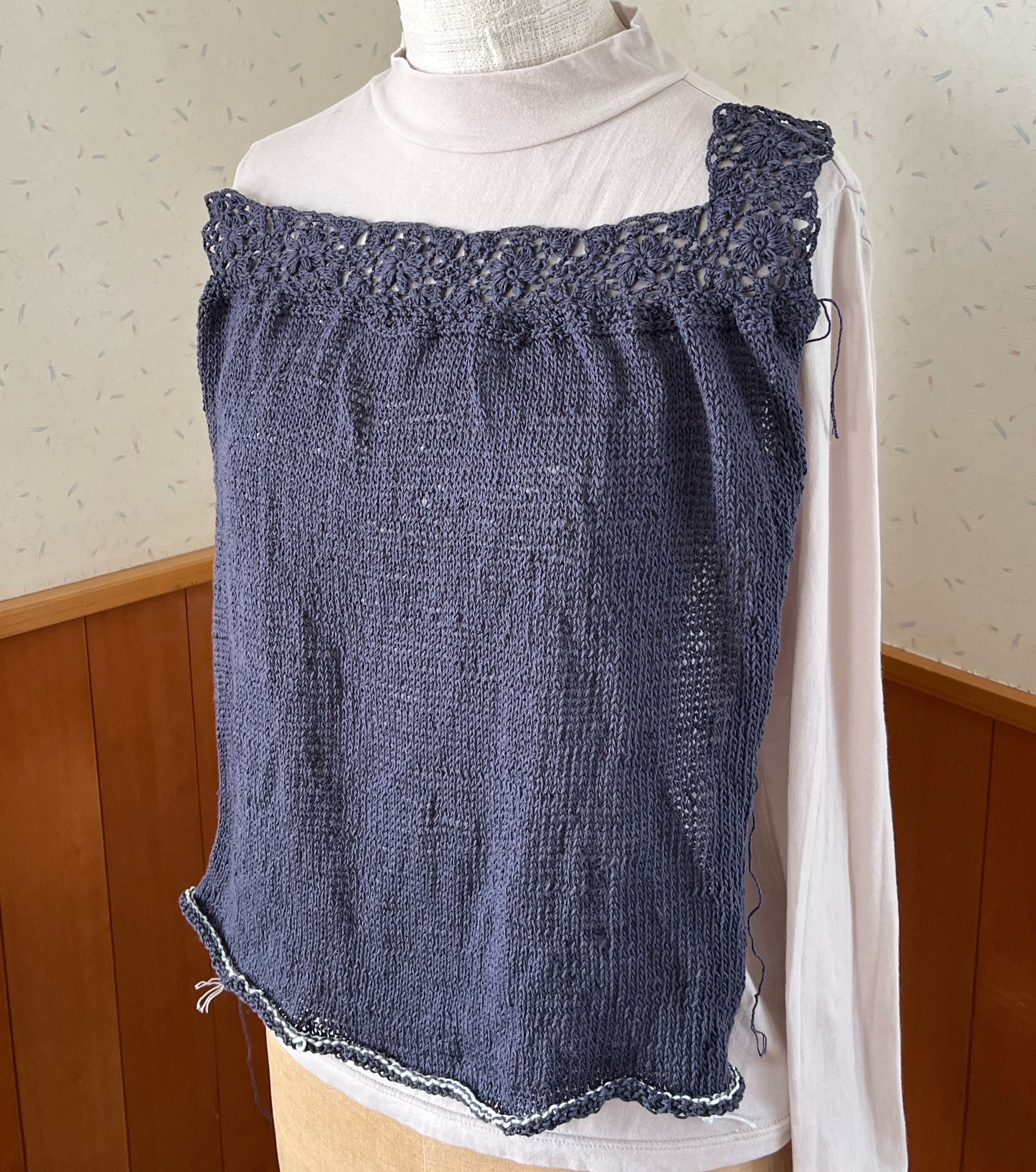 左右のカギモチーフ部分を繋ぎ終えました。左右がもっと下がるかと思ったのだけれど、さほどではなく、よかった。自分用なので,試着。うーん。。トルソーさんだといい感じにギャザーが寄っていますが、私,自分で思う以上に巨大化が進んでいたようで、着られるけれど、フォルムが違う。脇に配置したモチーフ、ヨーク部分よりわざわざ小さくしたものを使ったのですが、そのままの大きさのものにすればよかった。ま、着られるし、脳内の仕上がり図とは違うけど、このまま進めます。ただ、すその仕上げに迷って試行錯誤中。ガーターも違うし、ゴム編みも違うかな。ギザギザにしようか。悩みながら進めます。糸はこの前のタイプ。【578N】ビューティーシルクUV コットン シルク 毛糸 合細-中細 UVカット 編み物 手芸 夏糸 毛糸ピエロにほんブログ村