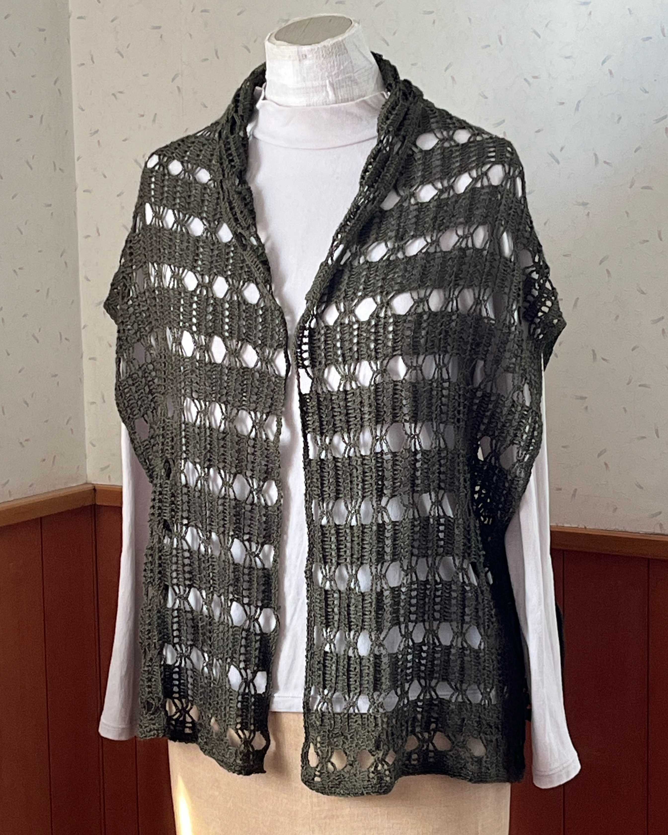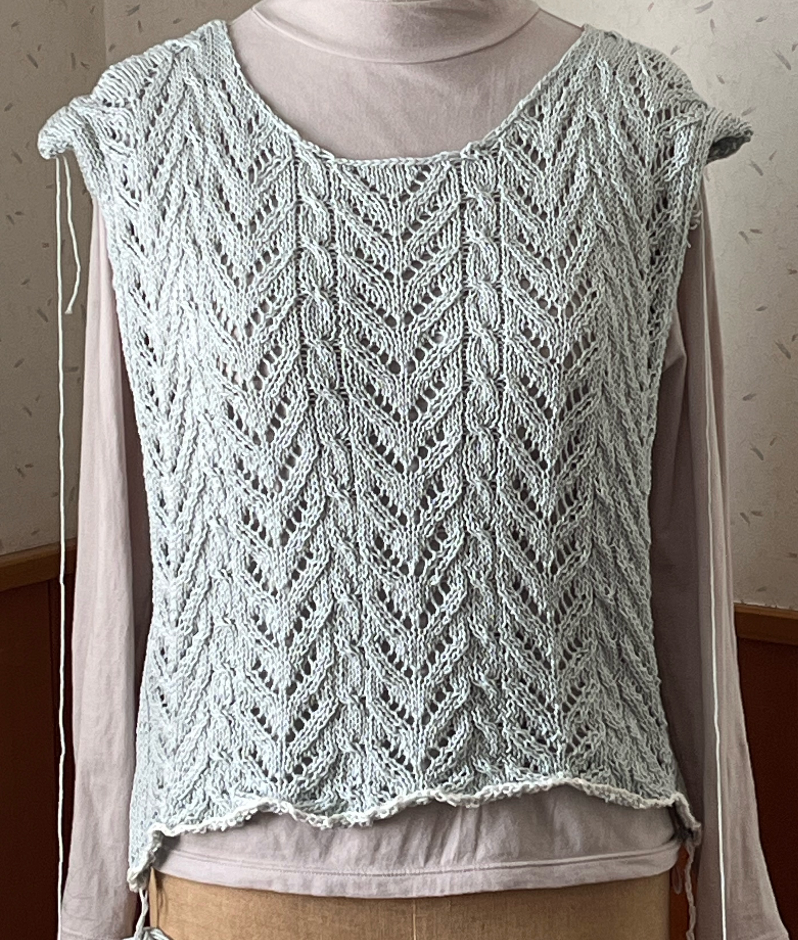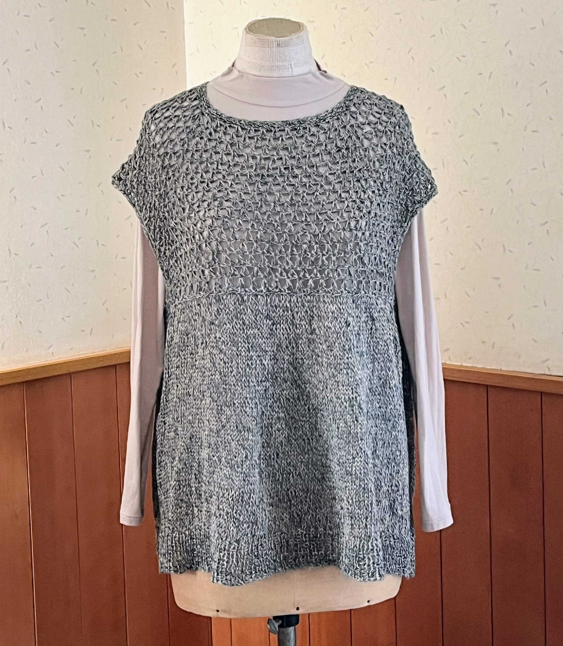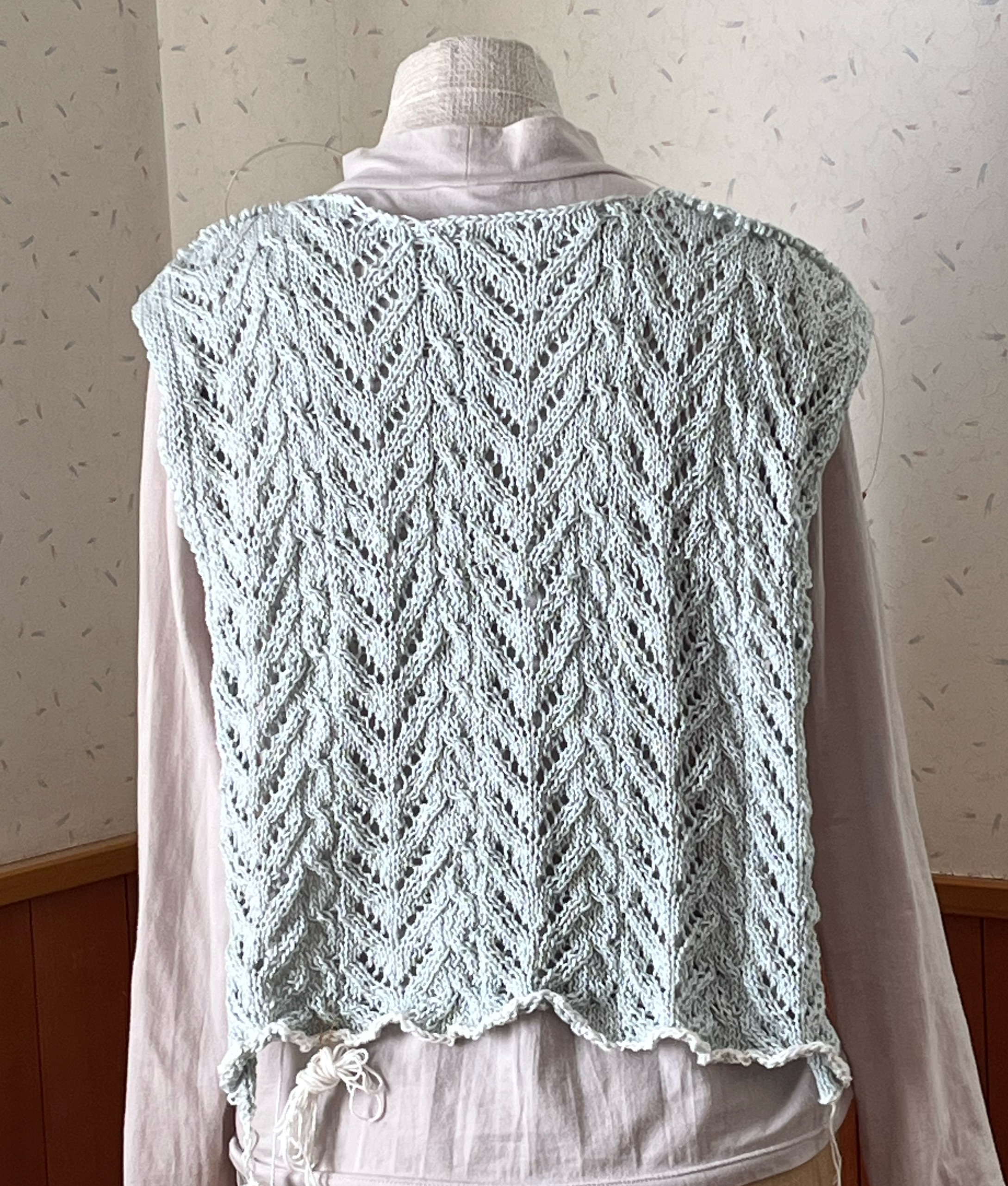 キットで購入したときに、ジレってことで購入。そんなに形変えてはいないので多分ジレ、でいいんだと思います。ベストみたいなはおりもの。洗ってすっきり。写真だと大差ないかな。後ろ。\TIME GOGO/【370】グレイスフル リネン 毛糸 麻 リネン 極細 編み物 手芸 毛糸ピエロ 夏糸 毛糸ピエロ 返品不可にほんブログ村