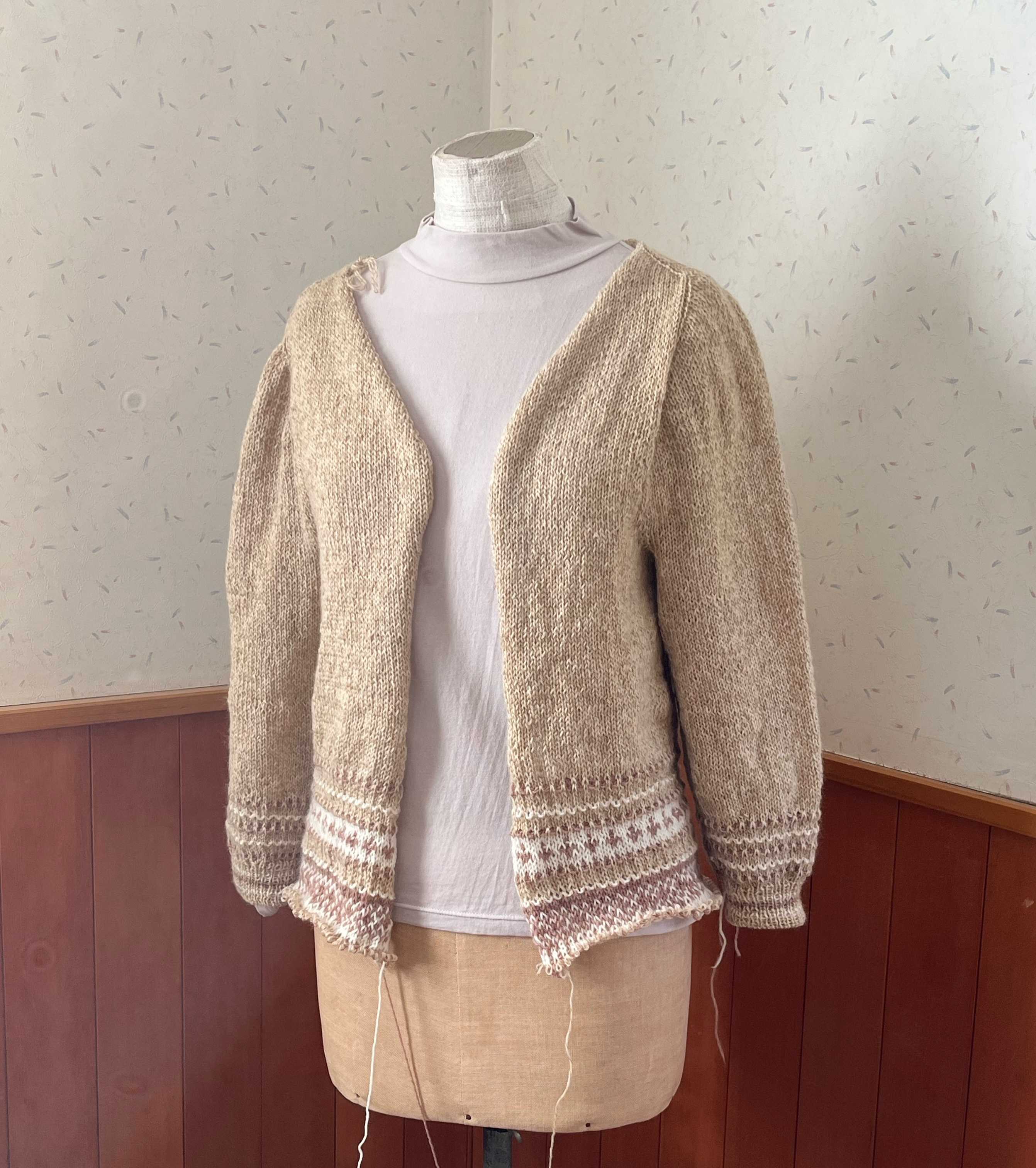 いつも洗うとすっきり、って書くのですが、このプル、思っていたほど編み地がすっきりしていません。気持ち目が揃ったかな、程度。裾の留めのもたつきが気になるので、そこはやり直します。トルソーさんが着ると目立つ肩の増し目部分は私が着ると目立たないのでこのままに。ちょっと割烹着みのあるシルエットだけれど、着ているとすごく楽なので着たおすつもりです。干す時に使うこれ、便利です。\楽天ランキング1位獲得!/ 平干しネット 折りたたみ セーター ニット 3段 物干し ネット ハンガー セーター干し 洗濯 乾燥 多段 ベランダ メッシュ 型崩れ防止 室内干し 平干しラック コンパクト 大容量 折り畳み収納 新生活 ぬいぐるみ hira-hgにほんブログ村