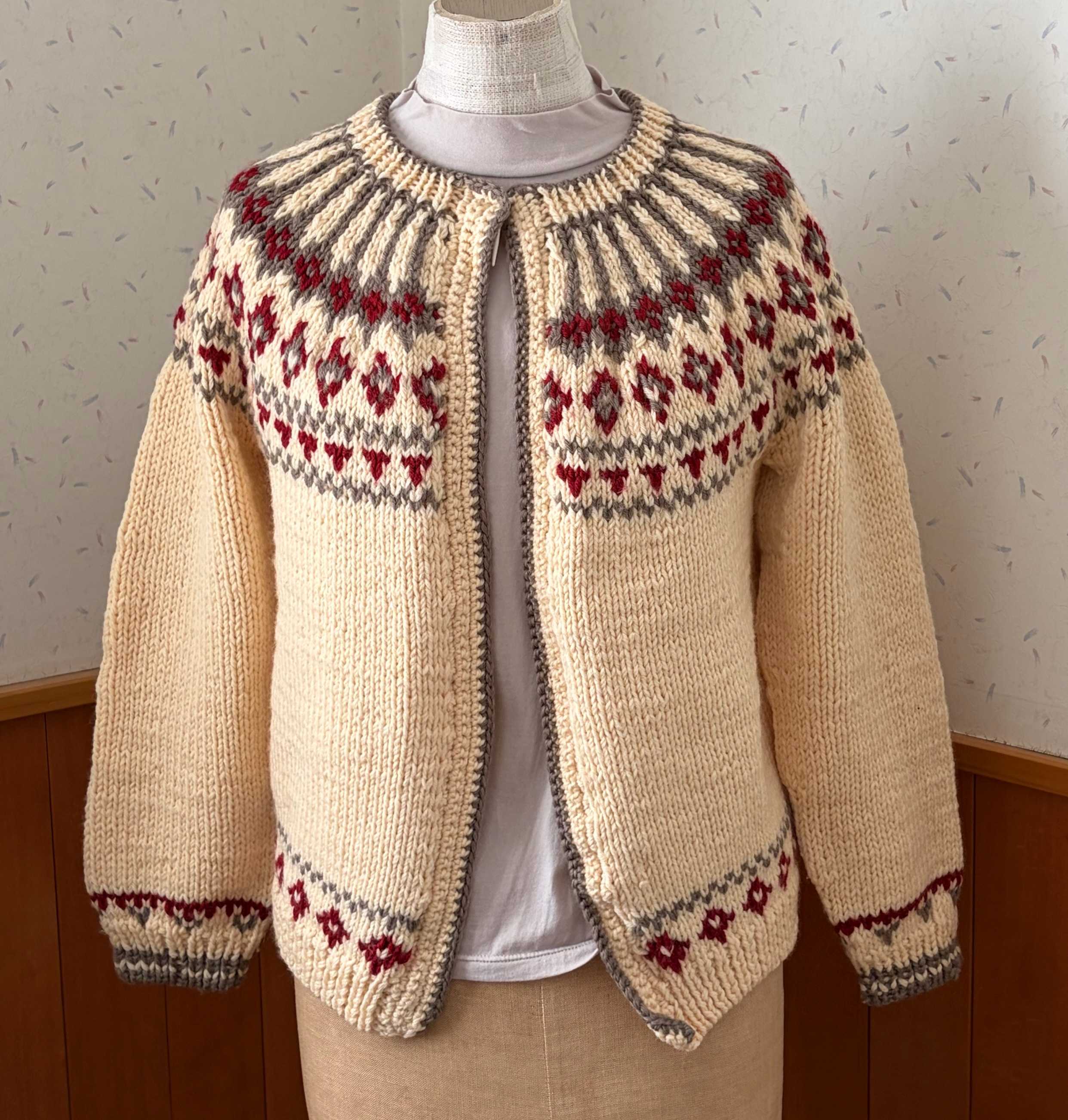 今週末までに仕上げたいと言っていた丸ヨークカーデ。一旦洗ってもあったので、前立てをほどくのも大変だろうと覚悟していたら案外サクサク進みました。ボタン位置がちょっと外だったけれど、もうこれでいいことにします。肩回り、とってもあったかい。ただし重い。ソフトメリノ2本どりって、重いよ。なぜご編んでいて疑問に思わなかったのか。昔の自分。使用糸はソフトメリノ中細ではなく普通のソフトメリノだった模様。細目とはいえ並太2本どりって。。。\TIME GOGO/毛糸 【521】ソフトメリノ極太 ウール 極太 メリノ 編み物 手芸 毛糸ピエロ 返品不可ボタン付けついでに、先日編んだ裾と袖先だけ編みこみの薄手のカーデ、編んだままで放置してあったので、糸始末を始めました。もうすぐボタンも付くはず。この丸ヨークカーデを扱った後だと軽すぎてびっくりするくらい。丸ヨークが重すぎるだけか。重すぎない丸ヨークカーデ、作りたくなりましたにほんブログ村