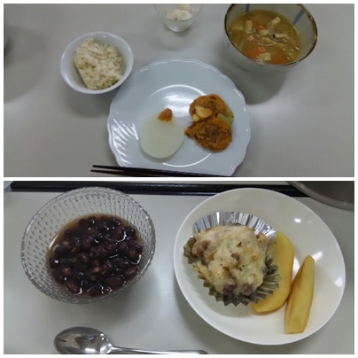 不覚にもギーを焦がしてしまいました。いつも参加した方にお持ち帰りしてもらうのですが、今日はそれを渡せず後日発送させてもうことにしました。焦がしちゃダメだよね。『焦がさないようにしてくださいね』って言いながら作っていたのに、私がやっちゃダメ。で、昨日ねぎ味噌を作ったので今日のメニューはねぎ味噌大根がつきました。ねぎ味噌好評でした。ご飯にのっけて食べてもおいしいよ。ジャガイモのお焼きにねぎ味噌大根。野菜たっぷりの味噌汁(ただの味噌汁ではないのですが。)白玉あずきにドライフルーツ蒸しパン。リンゴのギーソテー(シナモンかけ)でも、美味しそうに撮れないなぁ~。これを食べるとおっぱいたくさん出ると思います。快便になるはずです。何より、消化力が整います。だから、どんどん元気になります。産後、疲れてるなとか、食欲ないなとか、イライラするなとか、今まで感じたことのない不調はもしかしたら、消化力が弱っているからかもしれません。そんなときは、1週間朝食をおかゆにして白湯を飲んでみてください。これで、快調になったらしめたものですよ。快調になったかどうかの目安は『毎日う○こが出るかどうか』です。胃腸が快調だと心も快調です。出すもの出さないと、いいものは入ってきませんよ~。