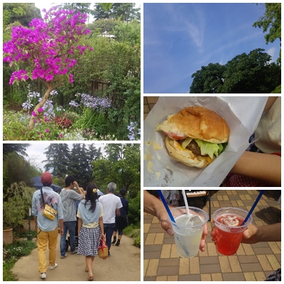 お天気が良かったので、久しぶりに親子でお出かけ。隣の駅の「京王フローラルガーデン・アンジェ 」でやっている「Go Green Market 2015 Spring」に行ってきました。ついたとたんにお腹が空いた我が家は肉の匂いに誘われてハンバーガーをゲット。今まで、ずーっと肉が嫌いで来た娘でしたが、最近「肉が食べたい」というようになり、ハンバーガーも娘のリクエスト。その場でパテを焼いていて、出来立てを食べたのでとっても美味しかったですよ。ただし、体中が肉の匂い。口の中が油っぽくなったので、「レモンスカッシュ」と「ストロベリーソーダ」で喉を潤し、園内を散策。たくさんのショップが出ていたので、可愛いものを見て目の保養です。私はアクセサリーを買いました。ここはフローラルガーデンと言うぐらいなので、園内花でいっぱいなんです。とってもキレイなところなのに、近すぎて行った事がないという。なので、こういうイベントがあるといつもは足を踏み入れないところに行けていいですよね。うちの旦那さんは自分もイベントに出ますが、こういうところに行くのが大好きで、いつも調べてくれるので私はくっついていくだけです。久しぶりに娘と並んで歩いた旦那さん「大きくなったな~」とひと言。外に出ると私より旦那と一緒に歩く娘なので、たまには出かけてお父さんと娘の会話を楽しんで欲しいな~なんて思います。家では私にしかくっつかないので。