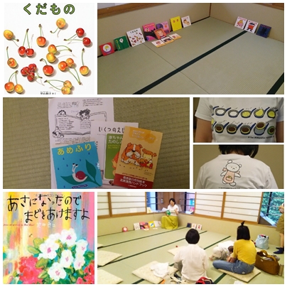 久しぶりにたくさんの絵本を見たら、娘が小さい時の頃を思い出しちゃった。子どもができたら、たくさん絵本を読んであげたいって思うのは、きっと私だけじゃないよね。でも、書店に行ったら絵本がたくさんありすぎて何を選んでいいのかわからない。0歳児にも絵本を読んでもいいの?そうこうしているうちに子どもはどんどん育って、 「あ~もっと小さい時から絵本読んでおけばよかったな」って反省したのは私でした。ということで、今回はねねや広場に「ブッククラブえほんだな!」の長嶺さんに来てもらって、たくさんの絵本を紹介してもらいました。長嶺さんのオススメの本(写真右上)がずらりと並び、懐かしい本がチラホラ。烏山図書館の方も参加してくださいました。作家さんの話、出版社の話、編集者の話、たくさんの人の思い、そんなことを聞いた後に絵本を読んでもらうと、いつもとは違ってよりその本のメッセージがストレートに入ってくるような気がしますね。私も1冊、大好きな「くだもの」(写真左上)を読ませてもらい、そして私のリクエストで「あさがきたのでまどをあけますよ」(写真左下)も急遽烏山図書館から借りてきていただき、長嶺さんに読んでもらいました。この2冊、やっぱりいいわ~。長嶺さんから参加者の方へのお土産は梅雨の時期にぴったりの「あめふり」と絵本情報(写真左中)。こういう情報は本当にありがたい。1時間の長丁場にもかかわらず、しっかり絵本を見ていた赤ちゃんもいたり、長嶺さんの癒しの声でお昼寝しちゃった子もいたり。何よりも大人がとてもいい気持ちになった時間でした。子どものために読んでいたつもりの絵本だけど、好きだった絵本を前に、大変な子育ての時間を過ごしていた自分を思い出したりして。大変だけど、楽しかった。こんなにかわいい絵本を読めたこと。私の声に喜んで、何度も何度も読んでとせがむ娘がいて。当たり前の風景はそれだけでしあわせなんだよね。そのときには気がつかない、いつもそこにあることが当たり前の時には。長嶺さんが着ていたTシャツ、なんだかわかりますか?こぐまちゃんのホットケーキなんですよ。子供用もあるとか。可愛くないですか?また絵本の会やりますね