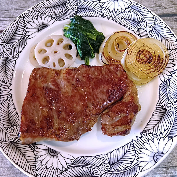 日曜日の夜ステーキ焼く予定だったのに結局お惣菜とお刺身になっちゃったから月曜日に改…