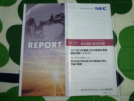 いやあどうも小型の優待バリュー株は軟調なところが多いですね。今日は7605フジ・コーポ、2769ヴィレヴァン、6059ウチヤマHD、2786サツドラ、3654ヒトコム、3097物語コーポなど、私の超主力株は軒並み大きく下がっており、厳しかった昨日に続いて今日もPF全体で2%近く下がりました。ロレックスが更にドンドンと遠のいていきますが、初心に戻って力のある優待バリュー株を発掘したいと思っています。さて、今日は久々に準主力株概況シリーズです。 21位 8793 NECキャピタルソリューション (東1、3月優待) ◎◎ PF時価総額21位の準主力は、NECの持分法適用会社でNEC関連が6割強を占めるNECキャピタルソリューションです。1月31日に 通期連結業績の上方修正 が出て株価はかなり上昇しました。NECキャピはこのところ極めて保守的な業績予想をする癖があります。昨日の冷凍餃子屋さんのように過大すぎる予想をされるよりはマシですが、あまりにも保守的過ぎるのも困りますね。 現在の株価は1545円、PBR0.51、株主持分比率9.2%、今期予想PER8.32、配当利回り2.9%(44円)、総合利回り4.1%(44+20=64円)で、優待は100株保有で2000円相当のカタログギフトです。1年以上の継続保有で優待は3000円相当にランクアップします。 ↑ 左が3000円相当、右が2000円相当のカタログです。 私は2012年は3000円商品としては、ステンレス製笛吹きケトル 2000円商品としては、折りたたみ踏み台 を選択しました。 リース関連銘柄というのは実に割安です。具体的には8424芙蓉リース、8425興銀リース、8439東京センチュリーリース、8566リコーリースなどですが、どこも優待族的には必修科目銘柄であると思います。その中でも特にNECキャピは低PBRで私好みのため、リース関連銘柄を代表して準主力の一角に入賞しています。これからも優待を楽しみにホールドしていく予定です。