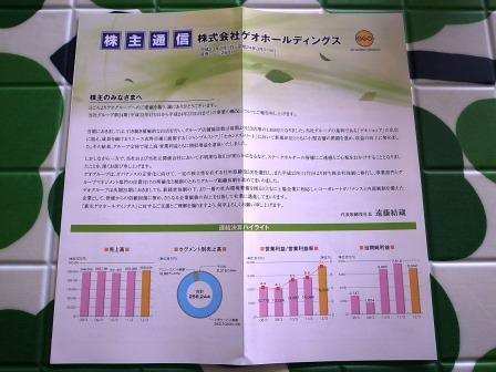 さて今日は通常のPF概況シリーズです。 289位 2681 ゲオホールディングス (東1、3・9月優待) ○ PF289位は、レンタル&リサイクル店を全国展開するゲオホールディングス です。 現在の株価は92900円、PBR0.96、株主持分比率は43.9%、今期予想PER6.74、配当利回り3.2%(3000円)で、優待は1株保有で レンタル料金割引優待(50%割引、株主本人が会員登録が必要)です。総合利回りはホルダー次第で無限大∞ということですね。(笑) ゲオHDは月次推移もまずまずですし、指標的な割高感も無くて割と良い銘柄です。PF中位でホールドしていくのには十分な実力の持ち主と考えています。