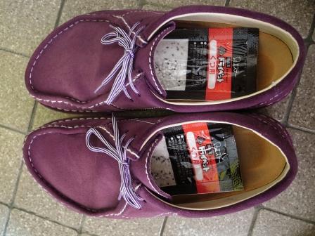 ↑ 私の主力株である8119三栄コーポレーション傘下の愛用のドイツ靴ブランド、ビルケンシュトックの愛靴にエステーの消臭剤をセットしたところ。ちなみに私はビルケンの靴以外は原則として履きません。