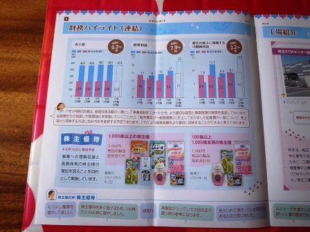 現在の株価は1254円、PBR1.14、株主持分比率は66.2%で有利子負債は0、今期予想PER17.49、配当利回り1.9%(24円)、総合利回り2.7%(24+10=34円)で、優待は100株保有で3月株主に1000円相当の日用品、1000株保有で3・9月株主に3000円相当の日用品です。