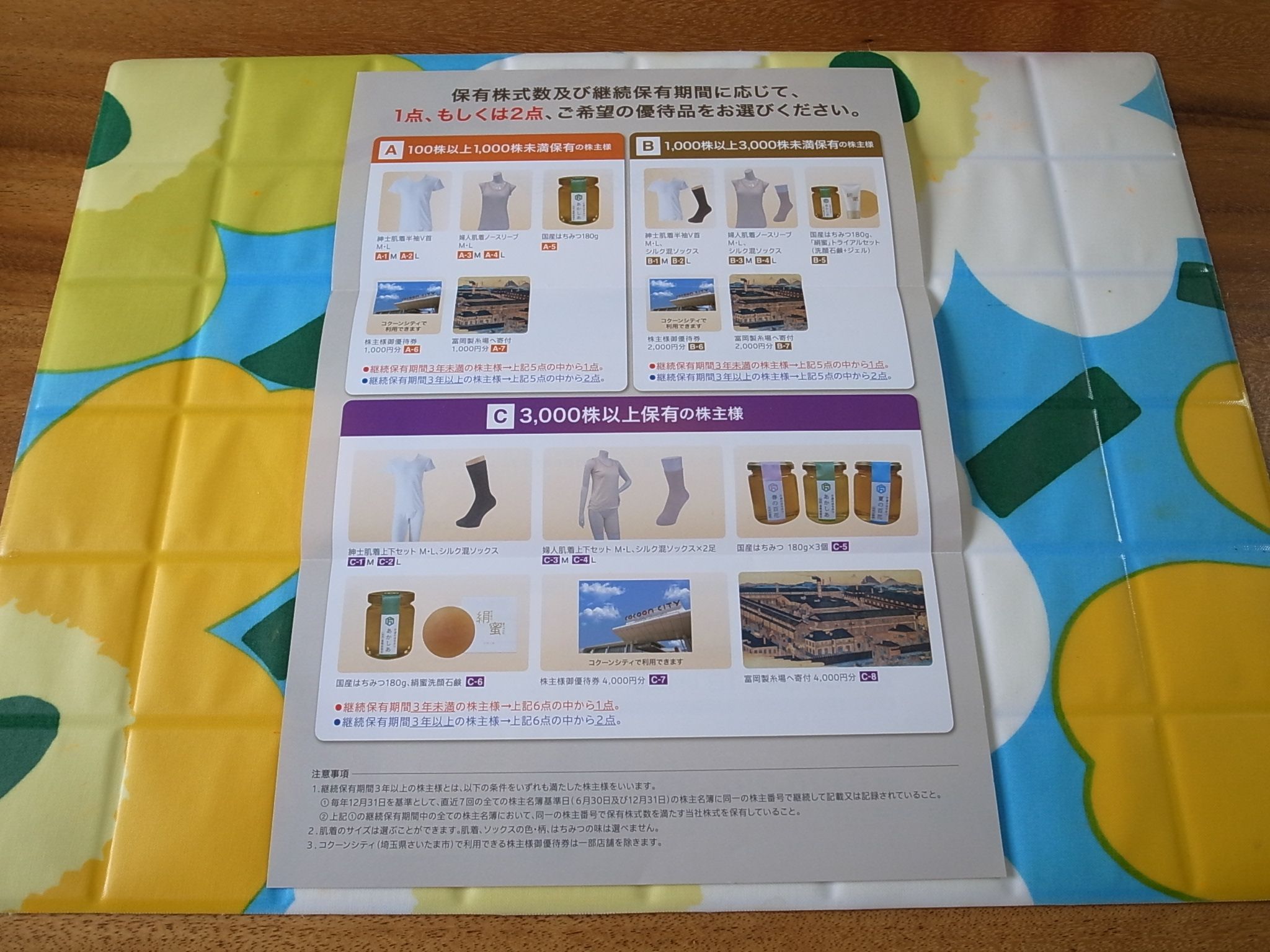 現在の株価は1277円、PBR0.84、株主持分比率は38.5%、今期予想PER26.44、配当利回り0.8%(10円)、総合利回り1.6%(10+10=20円)で、優待は100株保有で1000円相当、1000株保有で2000円相当、3000株保有で4000円相当の自社製品などです。