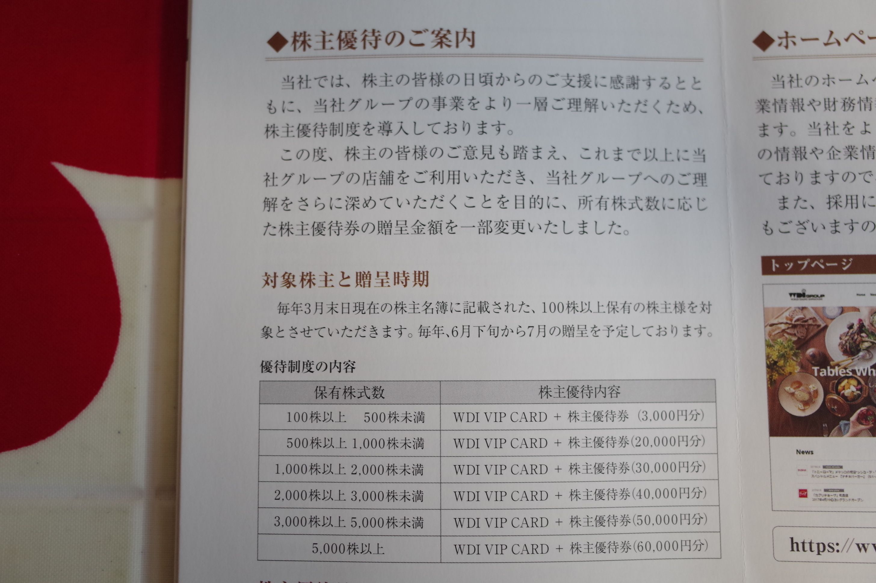 その一方でWDIの現行の優待内容や各店舗のクオリティは抜群であり、優待族としてはその誘惑に抗するのは至難の業、正確に言えばほぼ不可能でもあります。この手のやや危険で妖しい香り漂う銘柄に手を出してしまうのは我々優待族の大きな欠点の一つですが、ま、どんな投資家にも弱点はあります。その辺を歩いているノラ猫に「鰹節を嫌いになれ、今後の猫人生で金輪際食べるな。」と命令しても100%無駄なように、これはいかんともしがたいですね。(笑)