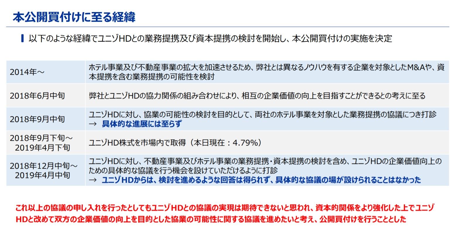 しかし、ユニゾHD側は以前から業務提携の協議について拒否しているとのことであり、これは今後荒れそうな気がします。色々と楽しめそうですね。(笑)